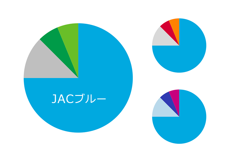 - 全体の配色は、ブランドカラーである「JACブルー」をメインとした【例:パターンA】か、コーポレートカラーでまとめた【例:パターンB】を参考にしてください
