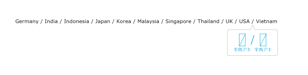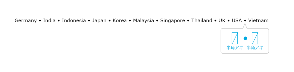 ・Place a half-width space between a bullet point and the names of the countries that come before and after it.